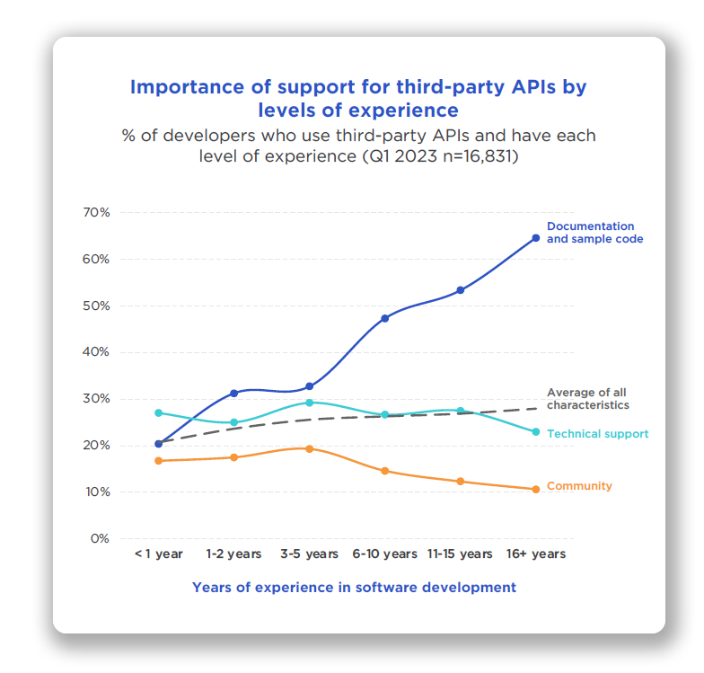 Let's chatAccording to the developer research firm SlashData, 47-65% of senior developers expect better docs and samples for high-quality APIs.