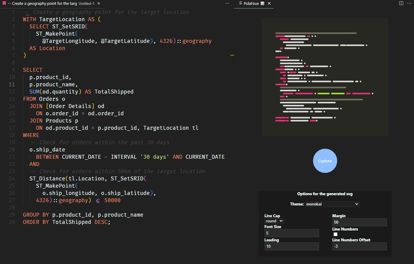 To generate the image above, I am using a neat little open source VS Code extension PolaFaux: