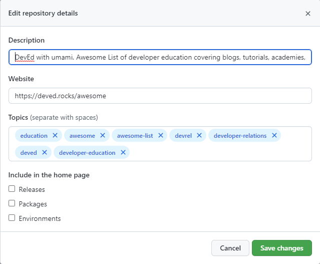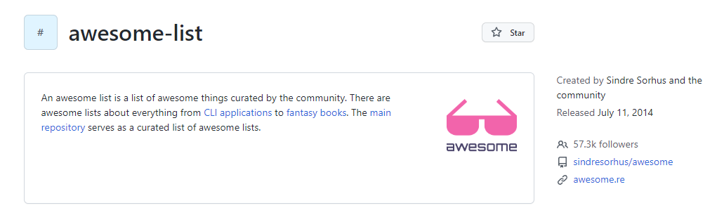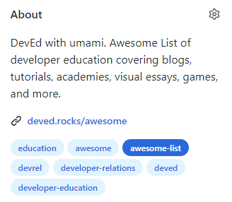 This header is what can be curated by you. Notice how this has a link to the repository that describes the topic plus an outgoing link to its website. The top can also be Markdown with links (and utm tags!).