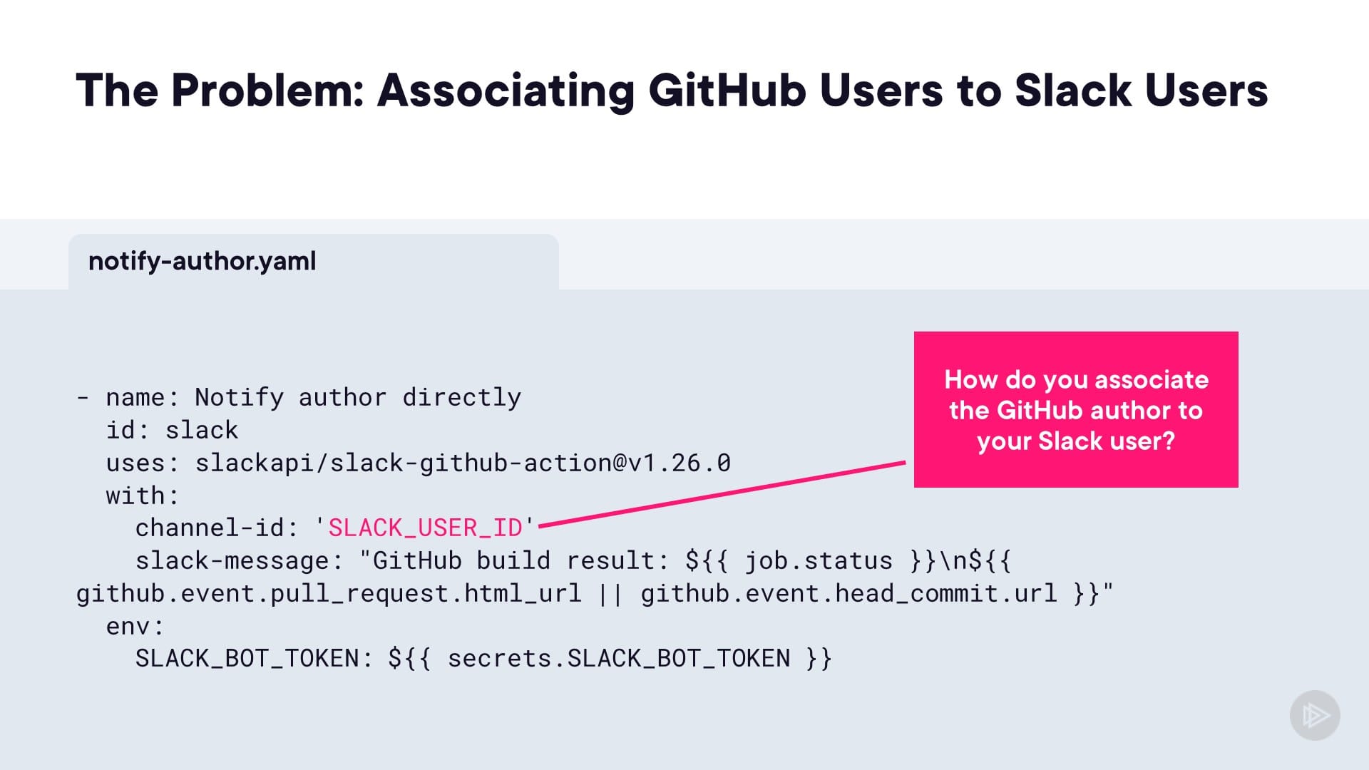 This is the conflict/tension I create in the story: there are already GitHub Actions that can post to Slack – but trying to take that extra step of notifying the author who triggered the Action workflow is missing (and would usually depend on the specific structure of your org).