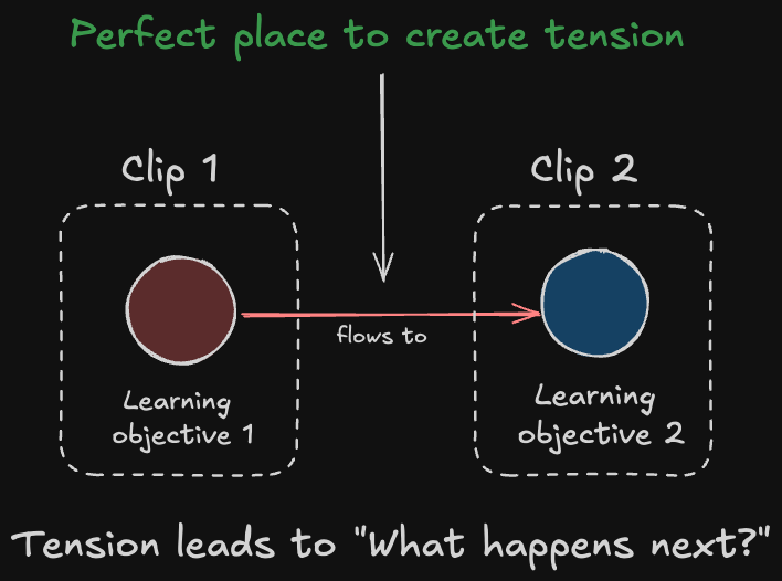 Now tension is created because they end the clip with this code. It leaves an "open loop" in the learner's mind – and we as humans crave to close open loops. It's why you binge Too Hot to Handle on Netflix.